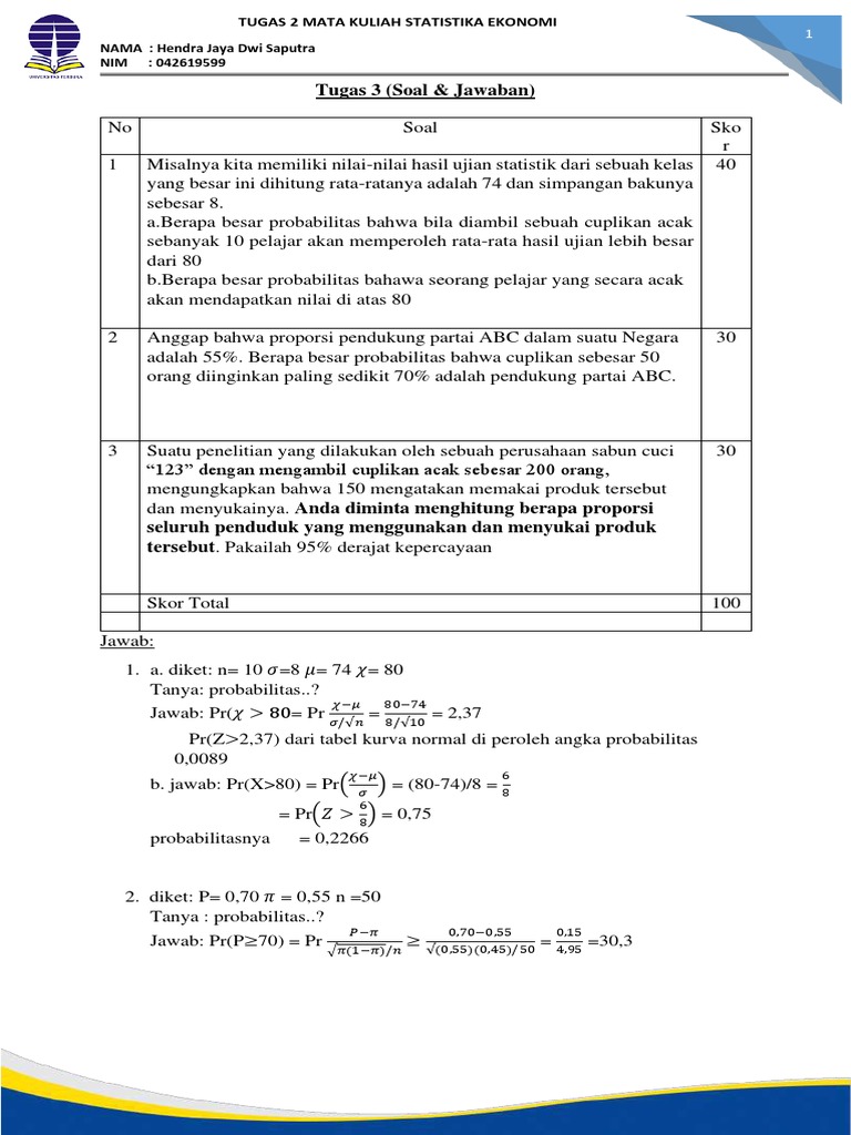 untuk "Probabilitas Cuplikan Acak / Tugas 3 Statistik Ekonomi : Probabilitas distribusi probabilitas ppt download."