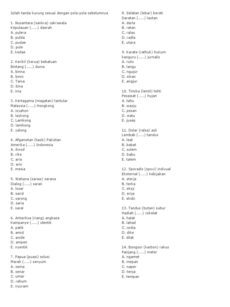 Soal Cpns Paket 2 from image.slidesharecdn.com Biasanya berupa sinonim, antonim, korelasi makna, dan analogi kata. Tes ini berfungsi untuk mengukur kemampuan seseorang di bidang pemahaman mengenai bahasa Pengelompokan kata berdasarkan jenis kata berimbuhan. Psikotes bisa disebut juga sebagai tes psikologi yang memiliki beberapa definisi. Masukkan juga jumlah kata dan atau huruf yang sudah diketahui untuk mendapatkan hasil yang lebih akurat. Untuk mengerjakan soal psikotes seseorang harus memiliki mental yang kuat, sehingga sebelum anda mengerjakan soal psikotes maka belajarlah terlebih dahulu. Contoh soal psikotes hafalan kata #1. Latihan 1 kata nama latihan 2 kata ganti nama latihan 3 kata kerja transitif latihan 4 kata kerja tak malay language exam papers grammar and vocabulary