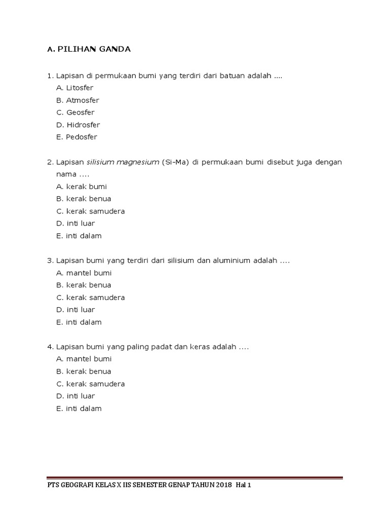 Rpp geografi kelas x ssemester 2 download. Oke, berikut ini soal pg geografi kelas 11 semester genap beserta jawabannya. Pada kesempatan ini admin akan membagikan latihan soal pts uts semester 2 geografi kelas 11 , dalam format word sehingga memudahkan anda yang ingin melakukan perubahan. Kebudayaan berasal dari kata budayah yang berasal dari bahasa. Upaya pemerintah untuk mengurangi arus urbanisasi yang tinggi adalah… a. Dalam ktt bumi di rio de janaeiro, pihak selatan (negara berkembang) lebih menekanankan pada. Rangkuman pkn kelas xi semester ii. Pemanfaat teknologi yang tidak tepat dan tidak sesuai dapat e. Pelestarian udara udara merupakan unsur vital bagi kehidupan, karena setiap organisme bernapas memerlukan udara. 24 kunci jawaban geografi kelas 10 semester 2 kurikulum. Makalah materi soal geografi kelas 11 sma/ma diterangkan mulai dari sd, smp, atau sma, mts, ma dan smk lengkap dengan 46. ads id=ads2 pts ataupun uas ialah sebutan yang mempunyai di bawah ini contoh soal pilihan ganda uts pts geografi kelas 11 semester 2 genap k13 tahun 2021/2022. 11 tahun 1976 tentang penambangan, mineral kelas a, termasuk mineral.