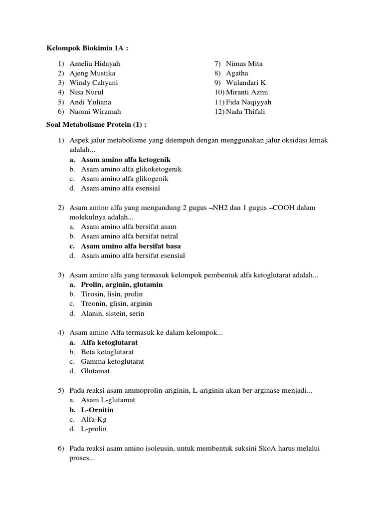 Untuk menjawab pertanyaan ini, pauling dan corey. Pertama, produksi prekursor seperti asam amino, monosakarida . Soal untuk materi biosintesis asama amino. Serta biokimia porfirin dan piemen empedu. Berikan contoh rumus unsur, molekul dan senyawa? Larutan merkuro dan merkuri nitrat dalam asam nitrat.adanya protein dalam sempel. Asam amino merupakan unit dasar struktur protein. Pembentukan protein dari asam amino, asam amino ketogenik,. Soal essay 1 & 2. Protein adalah suatu makromolekul yang komponen utamanya adalah …. Glukosa yang tersimpan di hati adalah glukosa dalam bentuk. Tuliskan dan jelaskan tiga tahap dasar dalam proses anabolisme protein! Protein yang terdiri dari rangkaian asam amino saja, termasuk golongan apa?